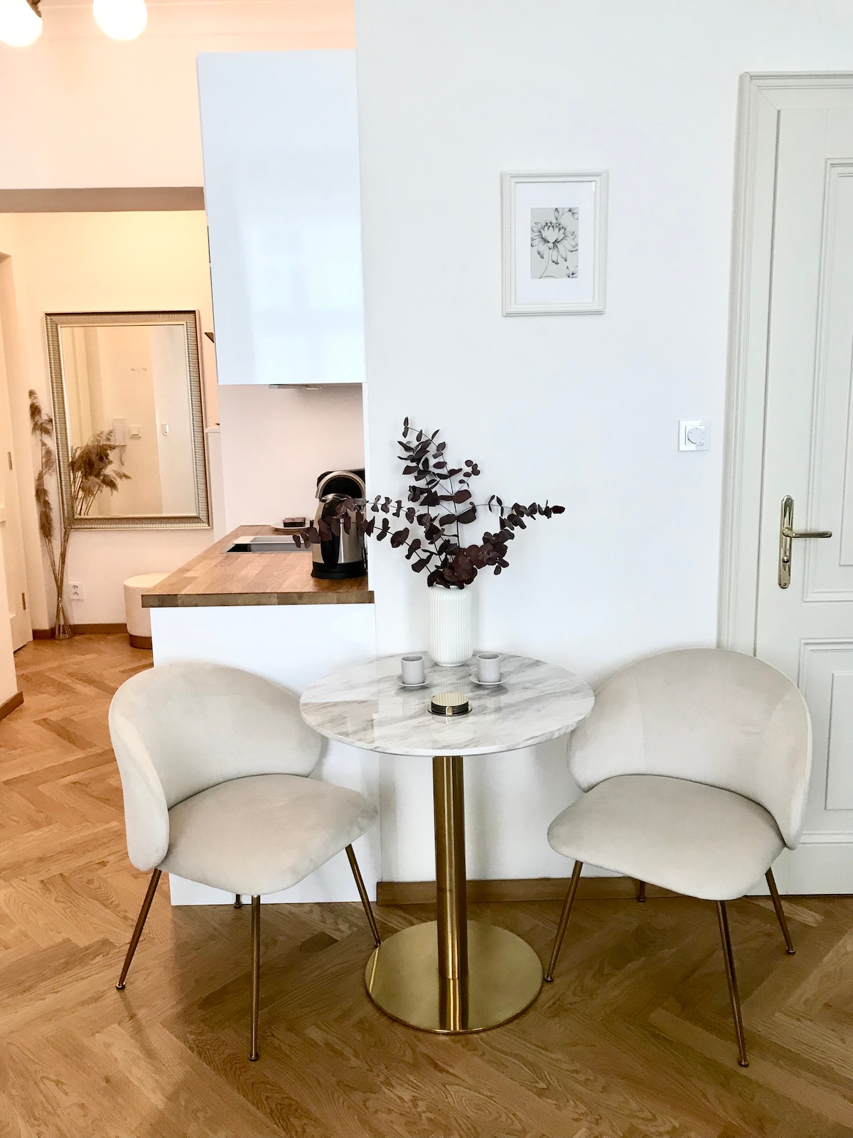 We've crafted our flat into a modern & neutral space, featuring plush and high-end furniture. The perfect balance of a tranquil atmosphere and the amount of natural light. As an extra touch, enjoy the privacy of your own In-Unit Sauna. Located in Vinohrady district, the best of Prague is at your doorstep. Explore the historic charm of Old Town and the dynamic energy of New Town, both within a 15-minute walk. Please be aware the building is being reconstructed until 30/11/2025