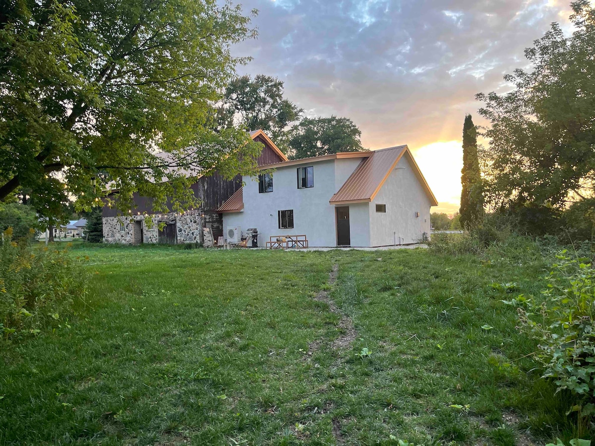 The Cloverland Barndominium is a thoughtfully renovated 100-year-old barn sitting on 5+ private acres of forest to explore next to a river. You'll share the land with friendly goats and chickens that you can watch from right outside your window! Outside you'll enjoy walking the trails, feeding the animals, taking the canoe down the river, making a fire in the fire pit, and exploring the forest. Escape the busy world and reset!