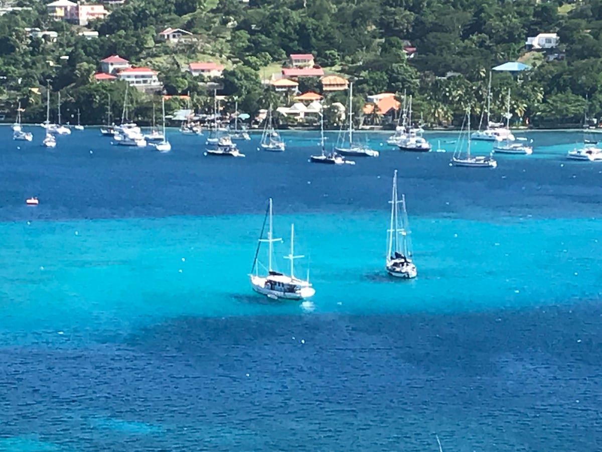 Enjoy a stay afloat in a beautiful bay on our boat sleeping while gently rocking in your very own V-berth cabin. Sit out on deck under the stars. Listen to the distant Caribbean drum beat coming from the close by bars and restaurants. Paddle to the nearby beach get yourself a cocktail and soak up the sun. Jump straight off the boat into 20 degrees of tropical waters. Explore the wonderful island of Grenada. Just to take note my husband and I and our small dog live on our boat. Happy to help :