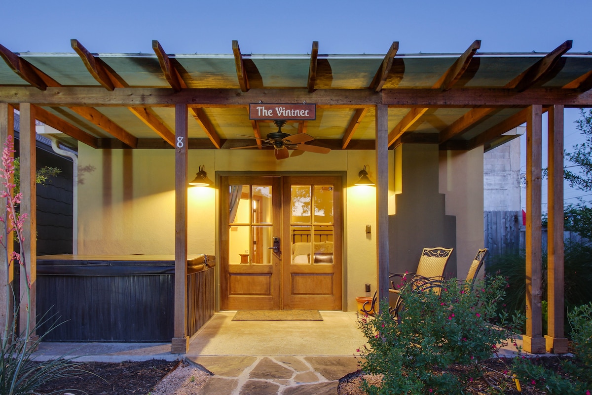 4 PERSON JACUZZI BRAND HOT TUB! NO CLEANING FEE! FREE EARLY CHECKIN/LATE CHECKOUT(when available)! TONS OF FREE AMENITIES PROVIDED! Free saus, egg, and cheese biscuits and popsicles. We just believe you should get more for Fredericksburg prices! We privately own and operate our GUESTHOUSE. It consists of a big main suite, 65" Roku T.V. with surround sound, full kitchen, full bathroom w/huge walk-in RAINSHOWER, full size Washer/Dryer, and FREE use of 40amp EV charger. 3 person max per fire code