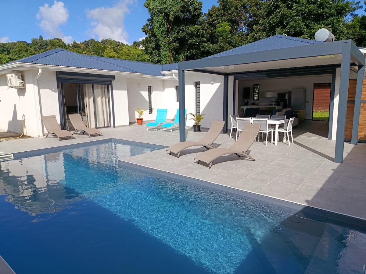 Venez passer vos vacances dans ce beau logement logé dans un écrin de verdure, au calme et au plus proche de la nature. Petit déjeuner fait maison compris avec la location. Vous aurez tout le confort à votre disposition ainsi que l'accès privé à la piscine et au carbet. Idéalement situé sur l'ile, vous pourrez vous déplacer facilement (5 min de la cascade aux écrevisses et randonnées, 30 min de la réserve Cousteau, 20 min des plages du Gosier). L'accueil y sera toujours chaleureux et discret.