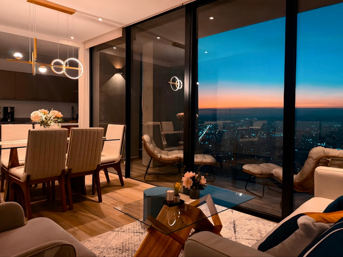 Your apartment at Terra Vista is between Blvd Guanajuato and the Panoramica. Secured parking, keyless entry and 500 meters to Pipila where you can take the funicular to Teatro Juarez and the Jardin. Enjoy a panoramic view on the Terraza of La Bufa then across to the north mountains. Double glazed windows ensure a peaceful sleep. The garden is a lovely evening retreat with lounge seating. Your apartment is 89 sq. meters with complete kitchen, contemporary original art and artisan made furniture