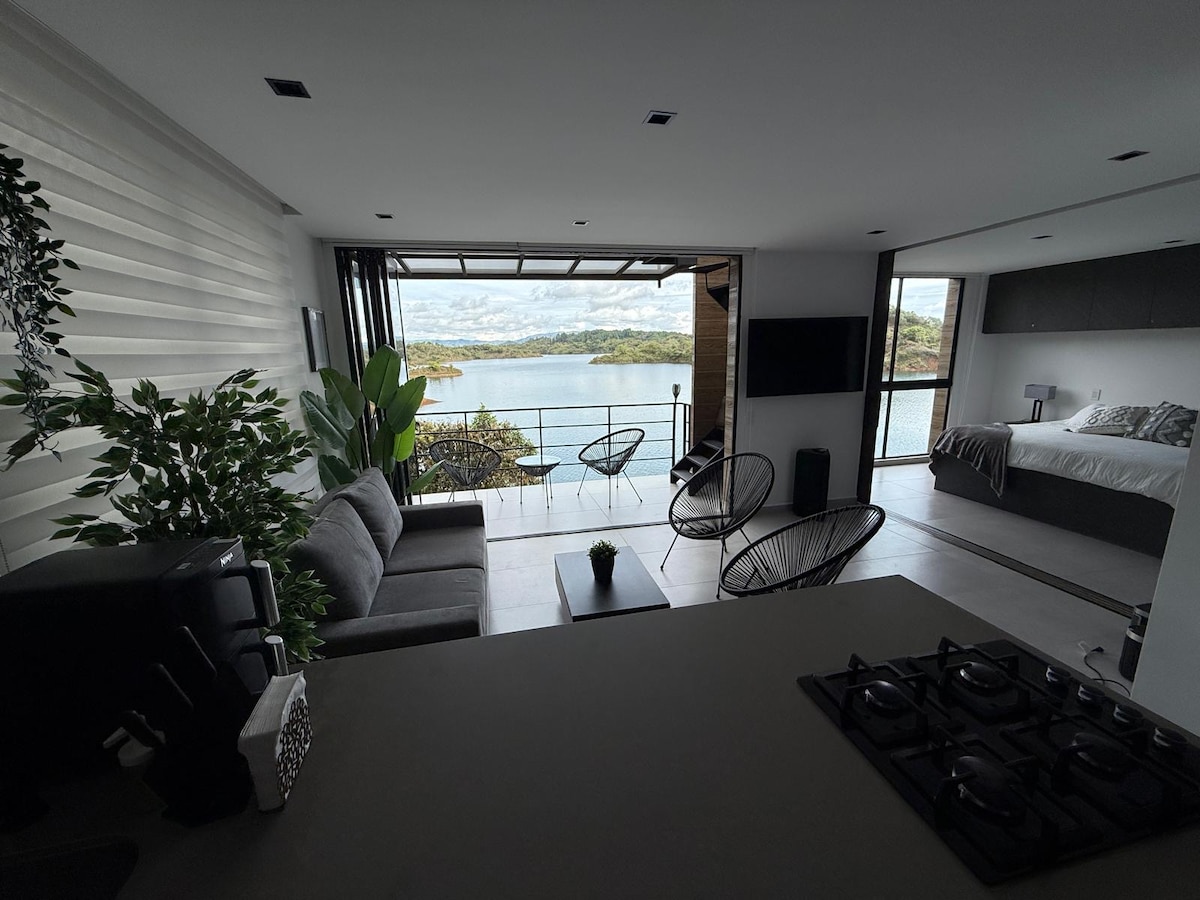 Acua Lake House, a private retreat with the best view of La Piedra. Perfect to relax and disconnect in harmony with nature. 🍳 Breakfast included 🛁 Jacuzzi 🌅 Deck 🍖 BBQ 🛀 Bathroom with garden 🛏️ Queen bed + sofa bed, max 4 guests 🌐 Starlink WiFi 🪢 Hammock area 🔥 Firepit 🚣♀️ Kayak & paddle board included 🍽️ Room service (optional) 🤵 Concierge by Marco 📍 5 min from La Piedra, 15 from Guatapé ✨ Every detail designed to offer you an unforgettable experience.