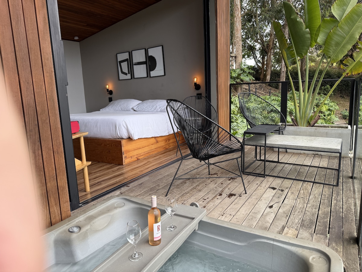 Disfruta una estadía cómoda y placentera en nuestra exclusiva habitación tipo suite de hotel. Relájate con una hermosa vista al lago desde la terraza privada o déjate consentir en el jacuzzi, ideal para desconectarte y descansar. Un espacio elegante, tranquilo y acogedor, perfecto para parejas o viajeros que buscan confort, privacidad y momentos inolvidables en un entorno natural.