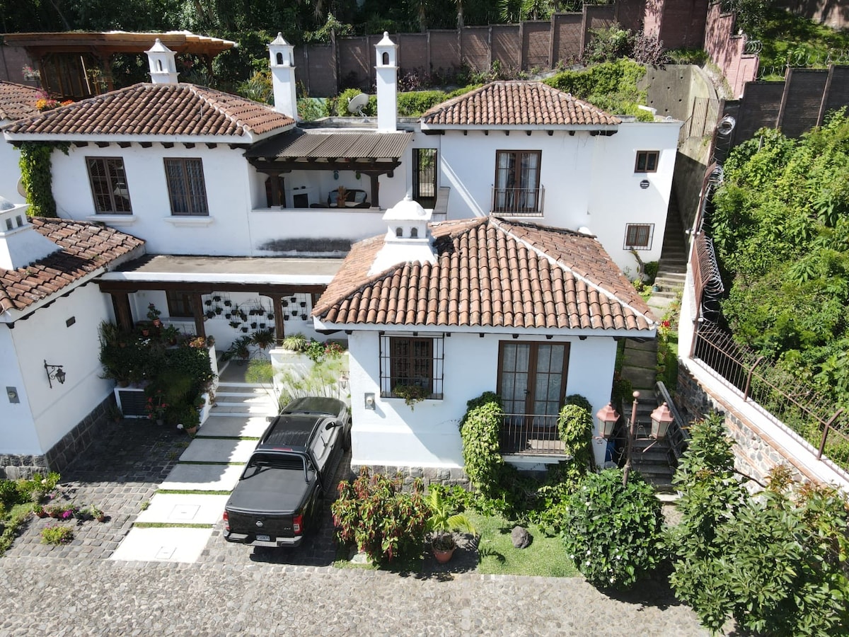 Apartamento en Ciudad San Cristóbal, un lugar seguro y tranquilo. Contamos con: un cuarto principal con cama king size y baño privado con una tina de agua caliente, un segundo cuarto con cama imperial, cocina equipada, sala principal con chimenea, parqueo para un vehículo, churrasquera y hamaca. La antigua Guatemala está a 15 km y el Aeropuerto Internacional La Aurora a 7.4 km del apartamento. Accesibles supermercados y restaurantes. Brindamos servicios de comida y bebida (Cobro adicional)