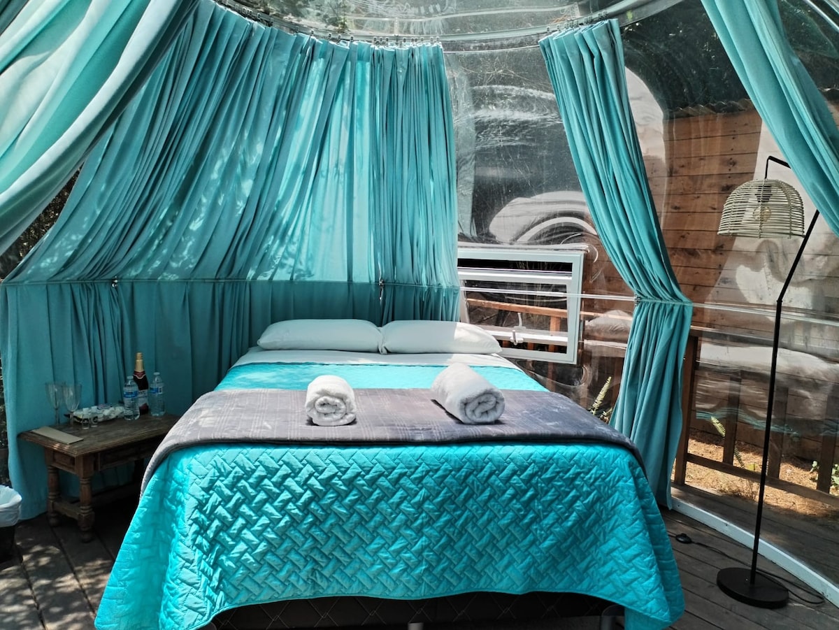 Domo geodesico. Único en la región un glamping inmerso en el bosque, construido sobre una base a 3 metros de altura entre los árboles.