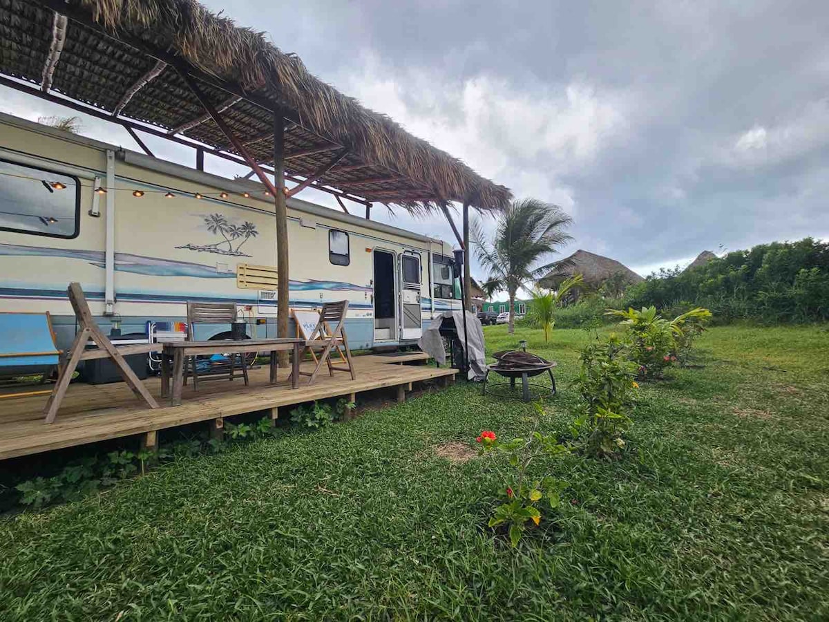 Enjoy your beach getaway at The Residency, a classic, 36 foot RV nestled under a thatch roof just a few meters from the beach. She has all the vintage feel and comforts to make your stay as unique and memorable as possible. The Residency sits at the end of the RV park at the Playa 14 for extra privacy. Your stay includes a 1 day-pass for each guest to Playa 14 which includes 3 pools, restaurants, bars, beach and is kid-friendly. Located just a few minute drive to the town of El Paredon.