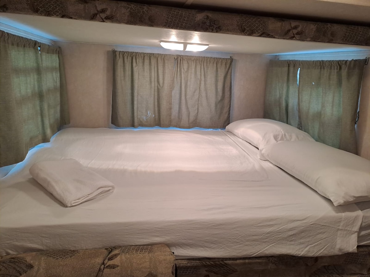 An ocean-front option for adventurous travelers—the feeling camping with comforts of home! Rental includes day passes to Playa 14 for all guests(only valid for 1 day) where you’ll find delicious food & drinks, kid-friendly shallow pools or adult-only swimming area/ cabañas. The RV comfortably sleeps 4 guests, with a king-sized loft bed & a queen-sized bed in the back bedroom. Couch & dinette can be converted into sleeping spaces for children.