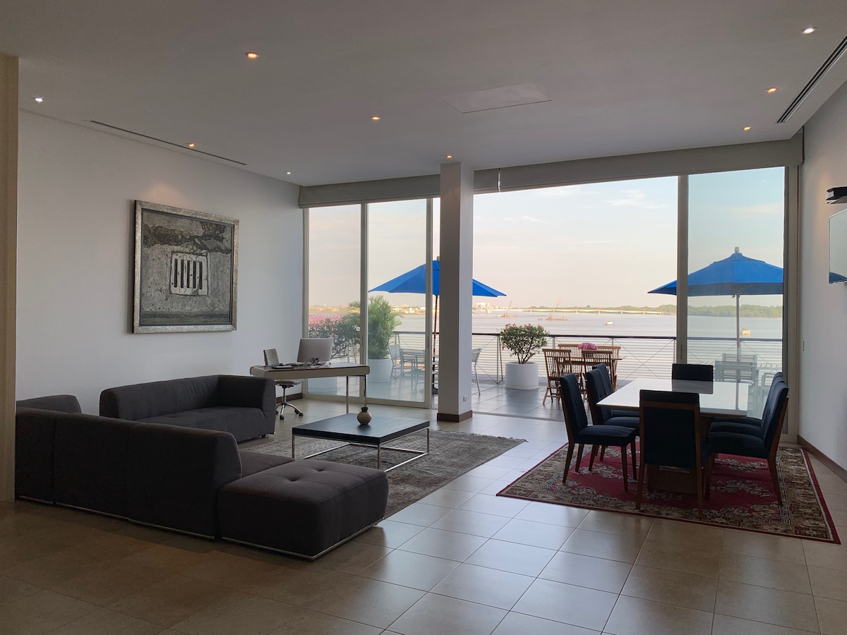 Nuestra Propiedad Consta de 7 espacios independientes para nuestros huéspedes esta es La Suite a mi criterio mas bonita y cómoda, puedes disponer de servicios comunes que se informan al momento de que hagas tu reserva así como de un delicioso desayuno antes de retirarte , Limonadas Café y te podrás solicitar todo el tiempo de tu estadía gratis la vista que tendrás desde nuestra terraza es fascinante a todo el paseo Malecón , La Perla y otros