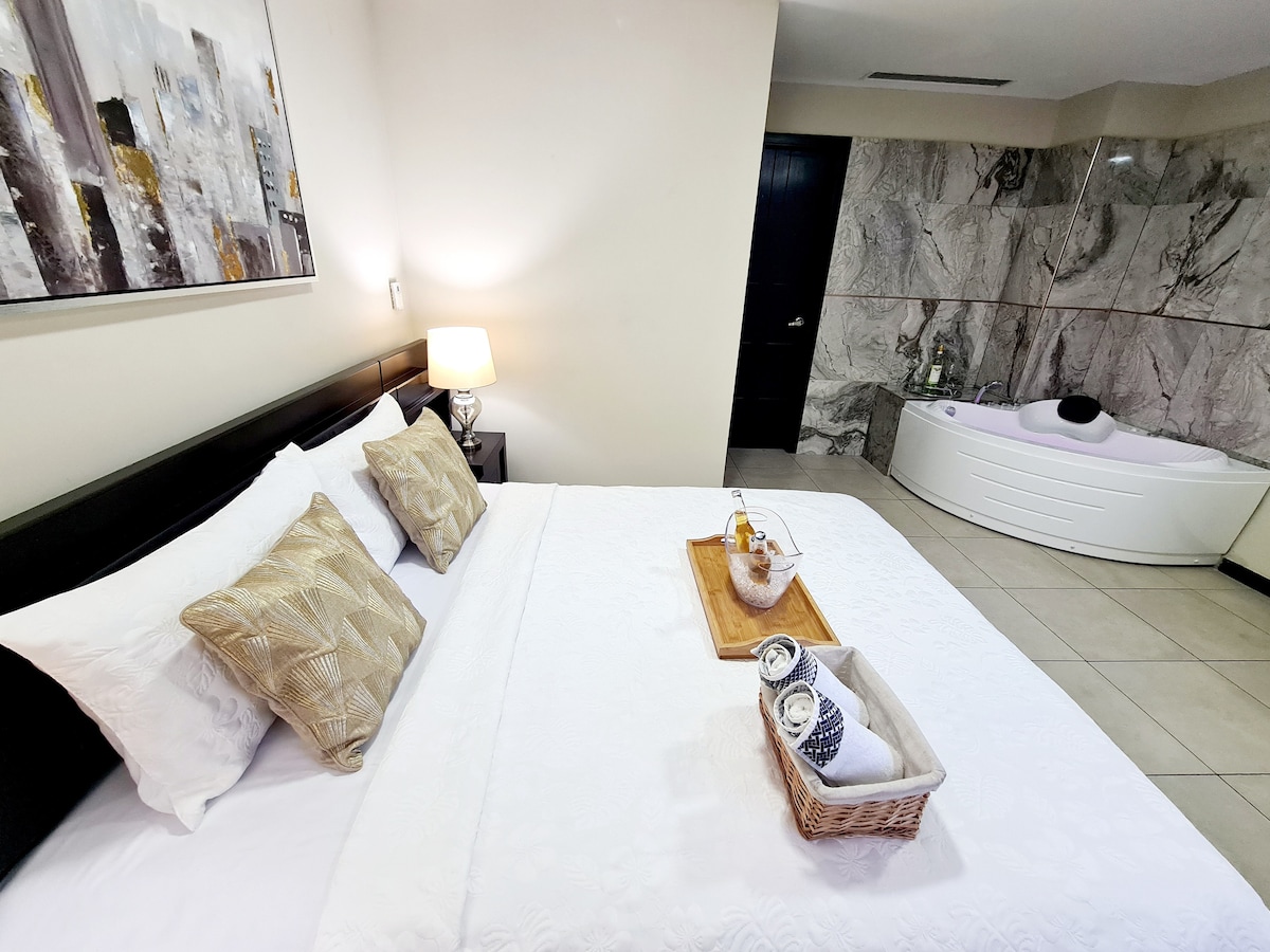 EXCELLENT APPARTMENTS GYE Disfruta de una velada romántica en un balcón de ensueño, enamórate de la vista o simplemente disfruta del ambiente interior finamente decorado para tí. Todo esto podrás hacerlo en nuestra exclusiva suite, en la que cuidamos minuciosamente de la limpieza. Un comentario común de nuestros huéspedes es que anhelan volver a hospedarse con nosotros. ¡Todo lo que encontrarás en esta suite ha sido preparado para que vivas una experiencia especial!