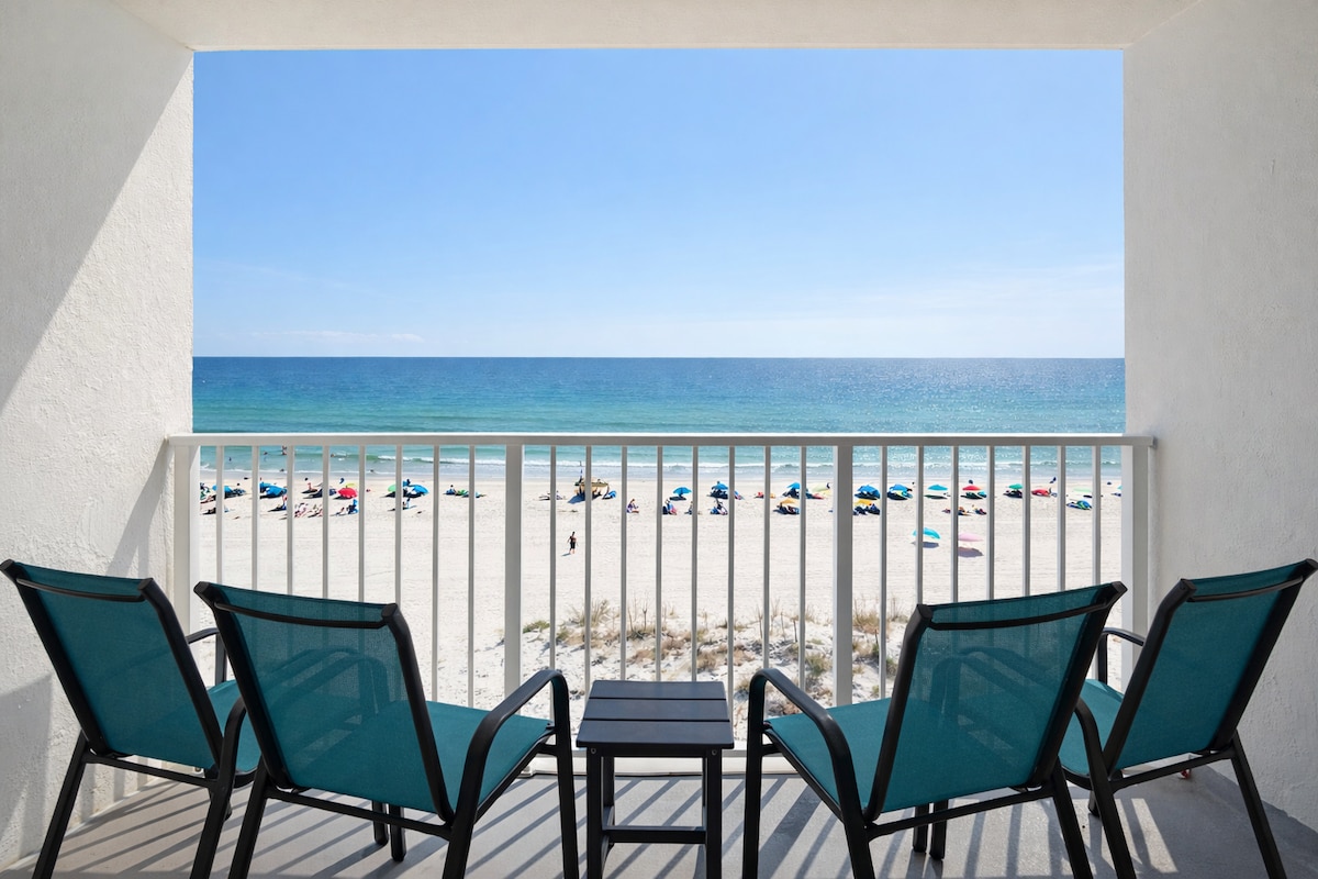 Make lasting family memories at our beachfront Gulf Shores condo, where the sand and surf are just steps away! This bright, coastal retreat features two comfy bedrooms, a fully equipped kitchen, and a private patio with sweeping Gulf views. Spend your days building sandcastles, swimming in the pool, or relaxing in the hot tub. Walk to nearby restaurants, ice cream shops, and fun local attractions—everything you need for the perfect family beach getaway!