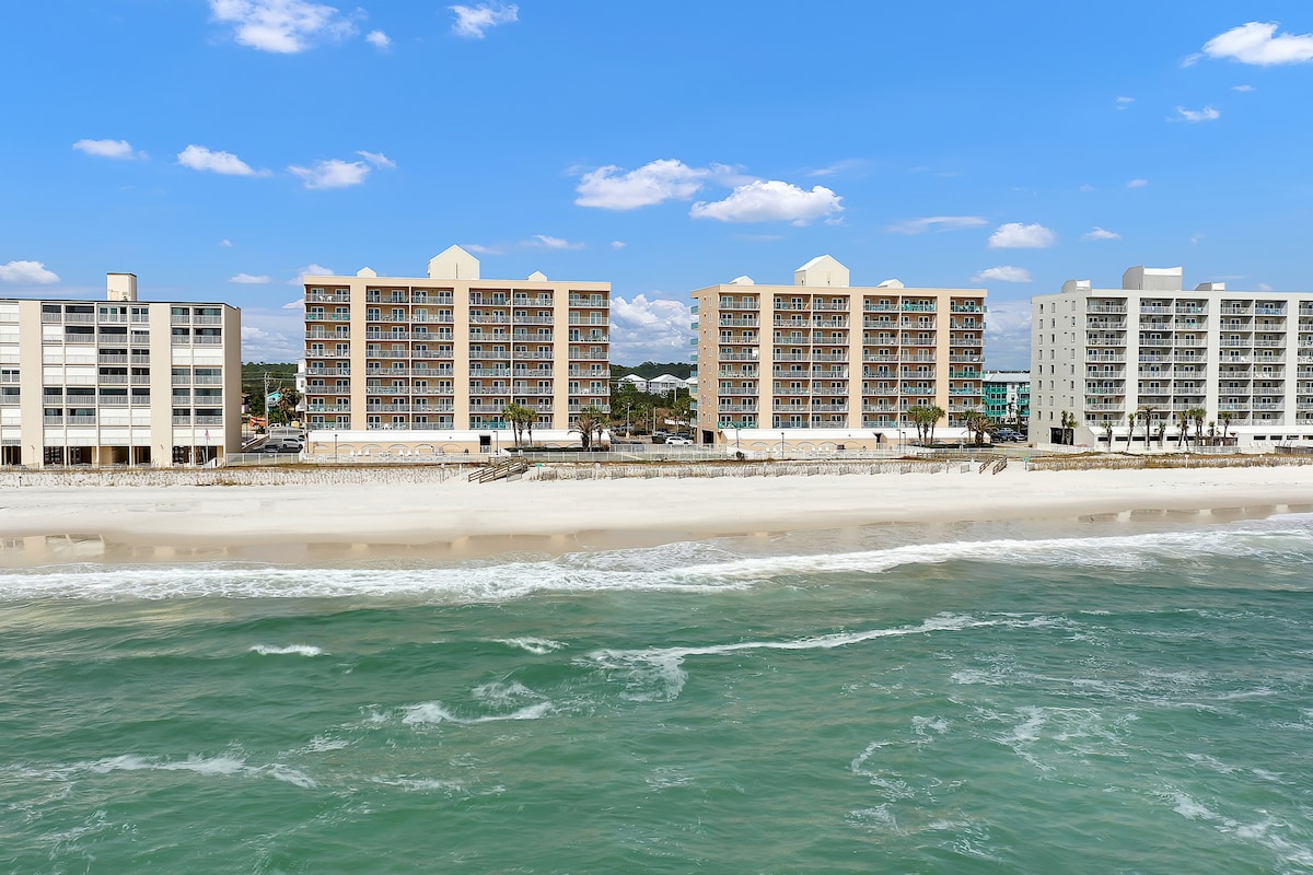 NEW OWNER! NEW BATH JAN24! Relax with the whole family at this peaceful 5th floor 2 BR end unit condo at our low density complex! The beach view is grand from our living room & balcony! The living room has a large set of windows showing a stunning view of the sugar sand beach and sparkling blue waves below. From the balcony, you will enjoy drinking coffee and watching the activities on the beach, the red sunset or taking a nap listening to the methodical rolling of waves against the shore.