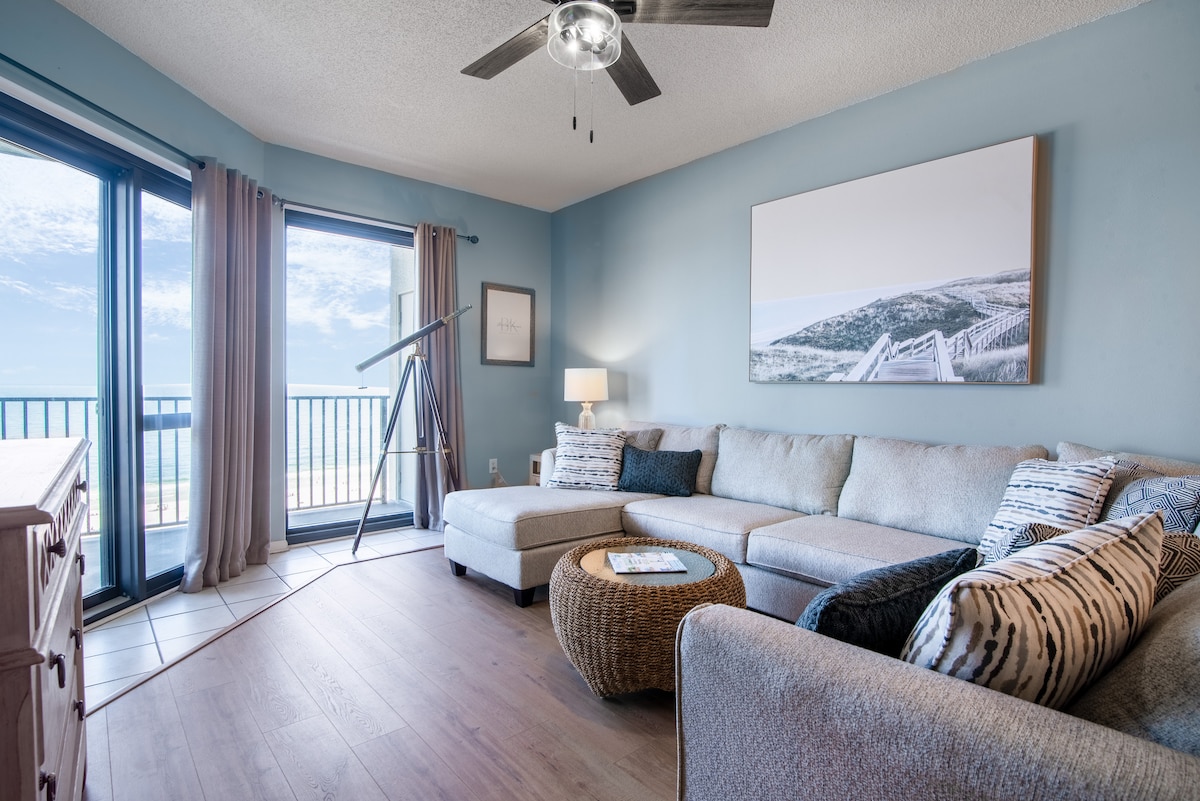 You'll love this spacious 3BR/2BA Beach front condo! Easy accessible to sugar white sandy beaches-just a short boardwalk! You'll love the beautiful ocean views and pool views from both the living room and master bedroom! Both rooms have sliding glass door entrances to your gulf front balcony, equipped with a patio table and chairs. You'll enjoy sipping your morning coffee or having a glass of wine at sunset on the balcony while taking in the beautiful views of the Gulf of Mexico.