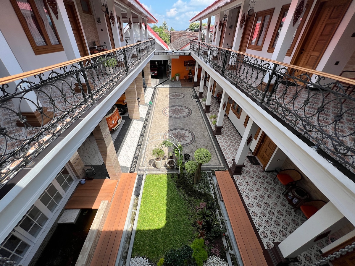 Welcome to Ndalem Kemetiran Malioboro A Perfect Blend of Minimalist Comfort and Javanese Charm. Ideally located just steps from Malioboro and Tugu Station. Our homestay offers a serene retreat with warm wooden interiors, large windows for natural light, and subtle traditional accents that create a cozy yet elegant atmosphere. Each room is designed for ultimate comfort, featuring premium bedding, air conditioning, high-speed WiFi, and a private bathroom with hot showers for added relaxation.