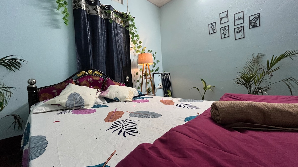1BHK private home with separate entry around peaceful residential areas in the Guwahati City. AC & NON AC both available 2bhk also available with one Room AC and another room Non AC . One King Size in the bedroom & one double bed in the dining cum living area . Additional charges of Rs. 250 per extra person after 2 guests applicable. Couple friendly , as long as the house rules are maintained for ages 18 and above. Car parking is subject to availability.