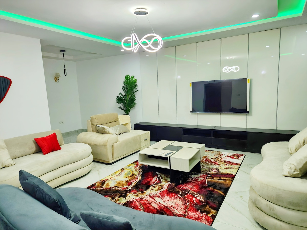 Enjoy a stylish experience at this centrally-located place. Home away from home, with state of the art decor and amenities to make your stay a memorable one. Facilities include: -PlayStation 5 - WiFi - proximity to major places . 2 minutes drive to maitama and 5 minutes drive to wuse 2. - 24hrs electricity with inverter and generator - 2 balconies -2 sitting rooms - Smart TVs in all rooms and parlors.