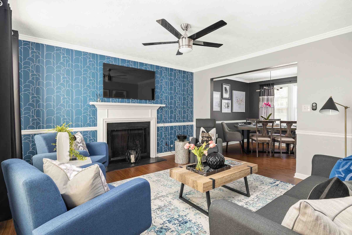 Perfect home for a night or many nights. Relax and enjoy the open kitchen and living area (tall 9ft ceilings) that open to a very large patio and deck in the fenced backyard. Three bedrooms upstairs for resting and quiet. Location is convenient to all areas near Atlanta and in a quiet small neighborhood with friendly neighbors (pet friendly!).
