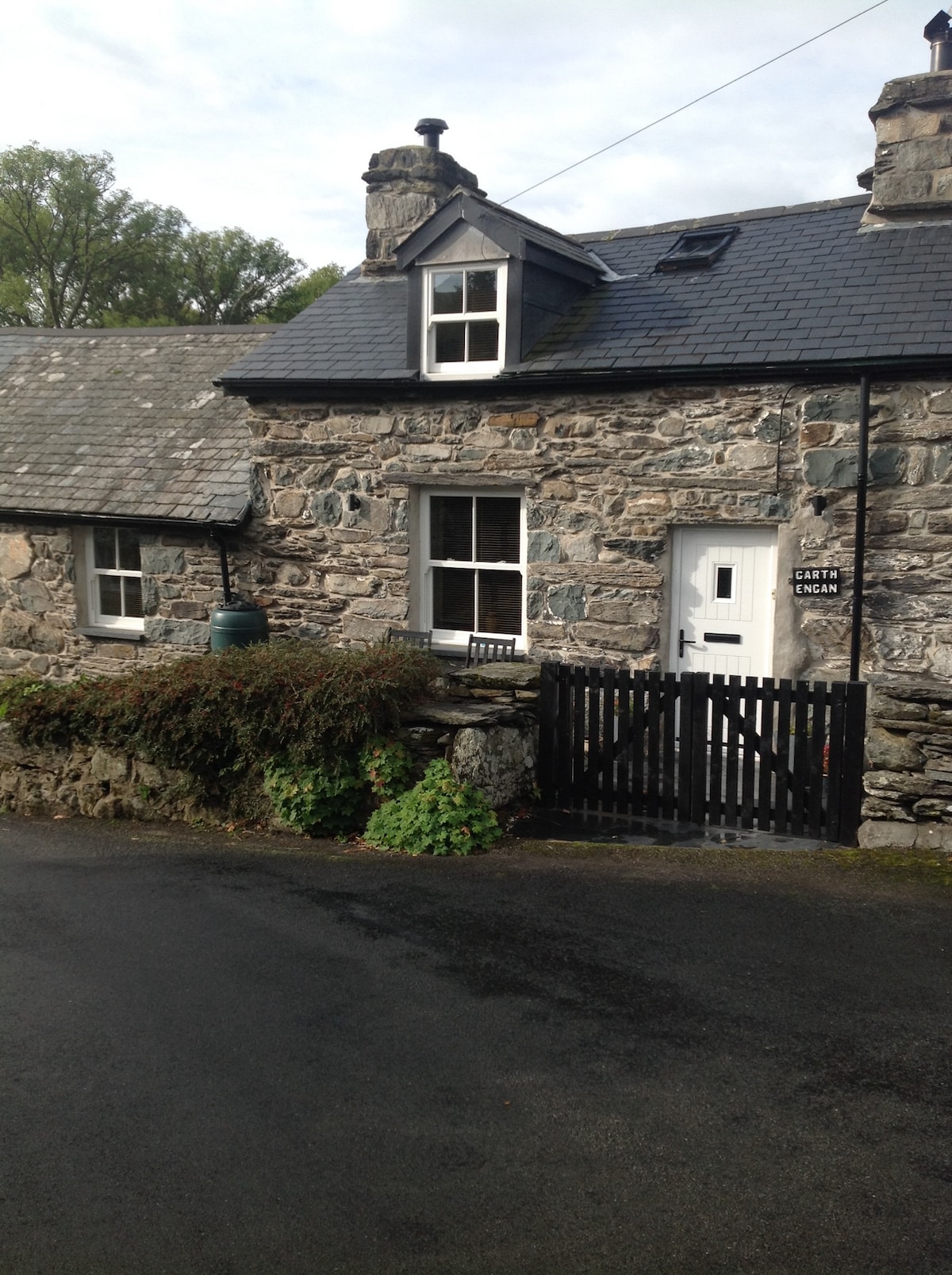 Secluded cottage in own grounds on edge of Snowdonia National Park. Wonderful views of coast and mountains. Close to Zip World, various National Trust properties, Castles and great walking and climbing. 2 separate bedrooms each with double bed and shared bathroom. Vegetarian breakfast provided includes cereals, yogurt, preserves, eggs and home made bread as well as other veggie food Evening meals can be provided at extra charge if ordered in advance (non-veggie, veggie,vegan).
