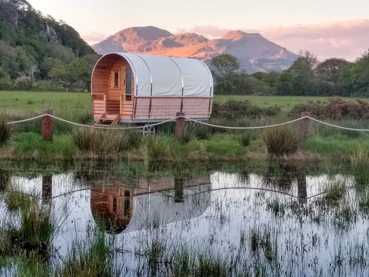 Escape to your Western Wagon, an adults/couples’ retreat between Snowdonia’s peaks and the Porthmadog coast. Unwind in our onsite sauna or enjoy a drink at the bar after hiking or exploring nearby beaches and castles. Forget cooking; the 'Cow Shed' restaurant serves breakfast to dinner, plus 24/7 vending for hot drinks, milkshakes & snacks. On site Ultra-Fast EV charging and a direct bus to Snowdon too. Just sleep, eat, and explore with a touch of luxury and stunning mountain views!