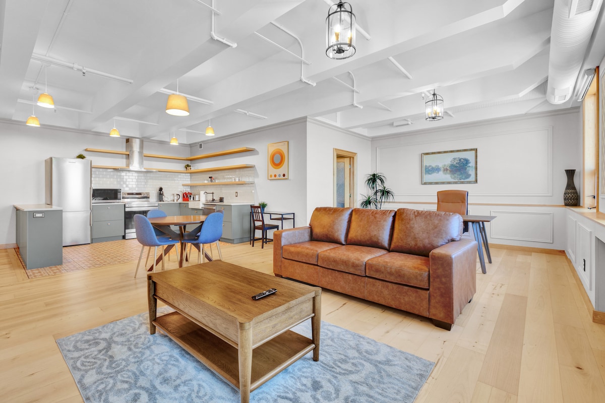 「The Loft」位于Jasper Ave,配备加大双人床、空调和地下停车位