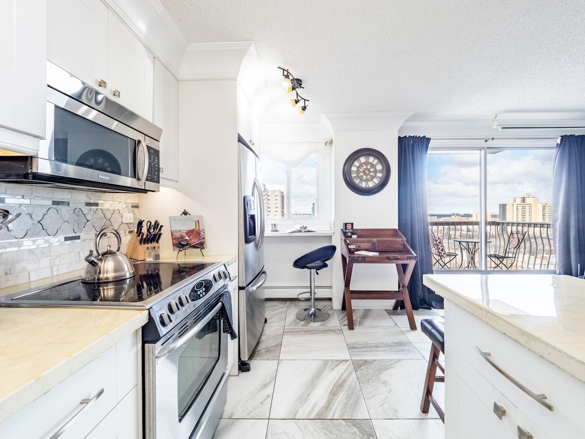 Newly finished and professionally staged 2-bedroom luxury condo in Windermere. Accommodates up to 7 guests. Heated underground parking; minutes from The Currents shopping-entertainment complex. ★ Professionally cleaned and managed ★ Underground heated parking ★ Minutes away from shopping, restaurants, and entertainment ★ Easy access to airport and arterial roads. ★ Fully stocked kitchen ★ Good-sized office providing added flexibility