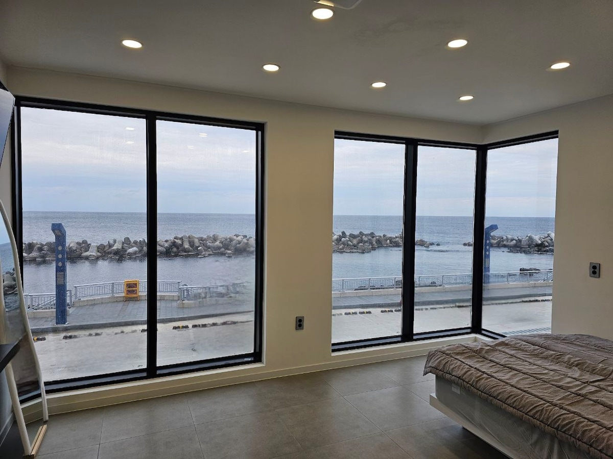 #Namhae Yangok โข A 5-minute walk from Sangju Silver Sand Beach โข Entire 2nd floor provided (fully equipped with appliances) โข Available in English โข Beam projector + NETFLIX โข Free Wi-Fi โข Smart TV with projector function โข Shared yard, swimming pool, and water play equipment available (May to September) โข Long-term stays (1 week to 1 month) available with additional discounts โข EV charging station right in front of the house