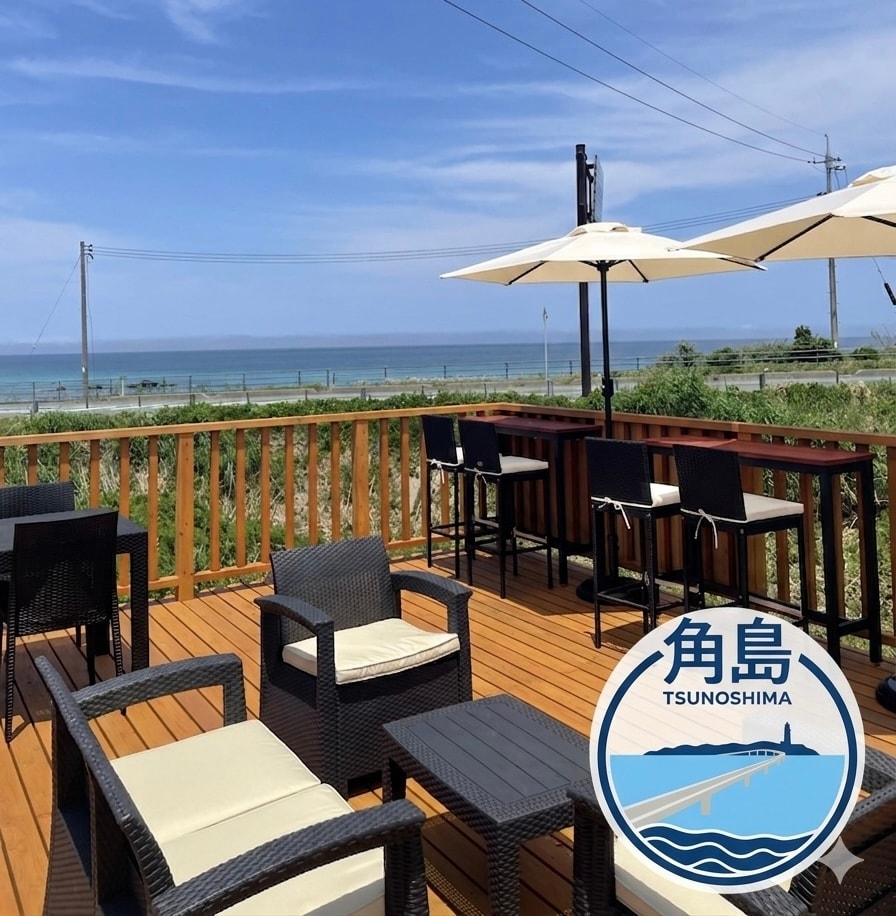This is a small one-story house with an ocean view. There are no buildings in front of you and the view of Yuya Bay below is very quiet and there is no TV. The Tsunoshima Ohashi Bridge and Motonosumi Inari Shrine are also within easy reach.