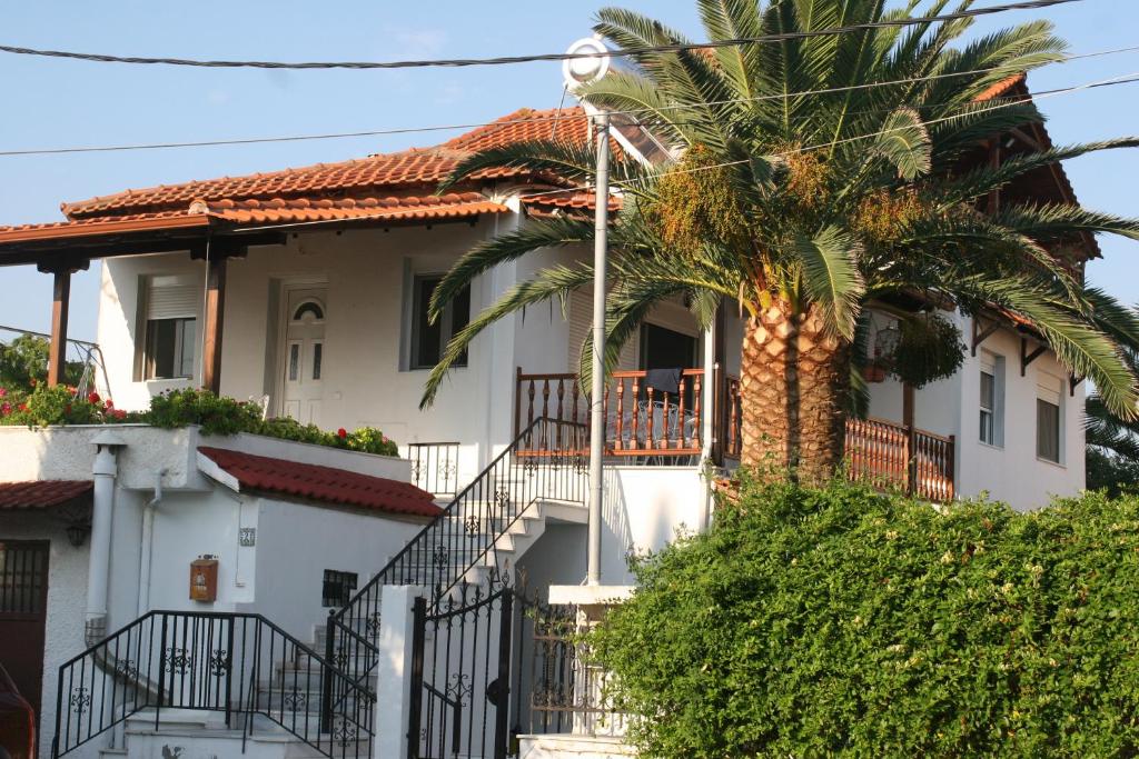 You will love this two-level home with its two green patios at the front and the back, amazing view of the sea from its spacious balcony, and with a sandy beach on your doorstep. The warm and friendly water makes it ideal for families with children. Relax while your children are playing in the shallow waters. The pool at the back is surrounded by olive trees and lush greenery. It is ideally located for day trips to world-renowned beaches in Chalkidiki and a 45-min ride to Thessaloniki.