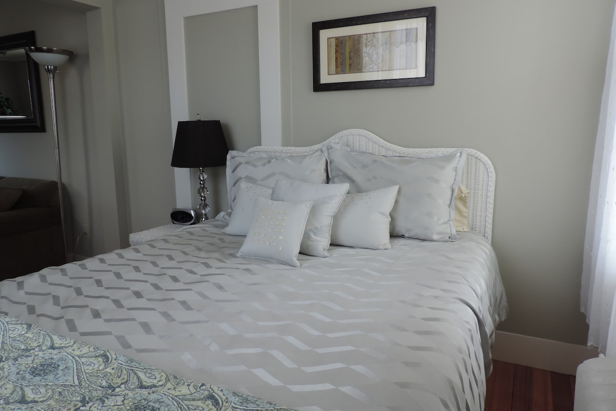**NEWLY RENOVATED** This comfortable king room features a full bathroom, dedicated parking, and amenities including a microwave, refrigerator, free wi-fi, and a Smart-TV. Also included is a large common greenspace with lawn chairs, propane grills, and a private dog-park. An ocean beach, several restaurants, a general store, and a specialty wine and cheese shop are within easy walking distance.