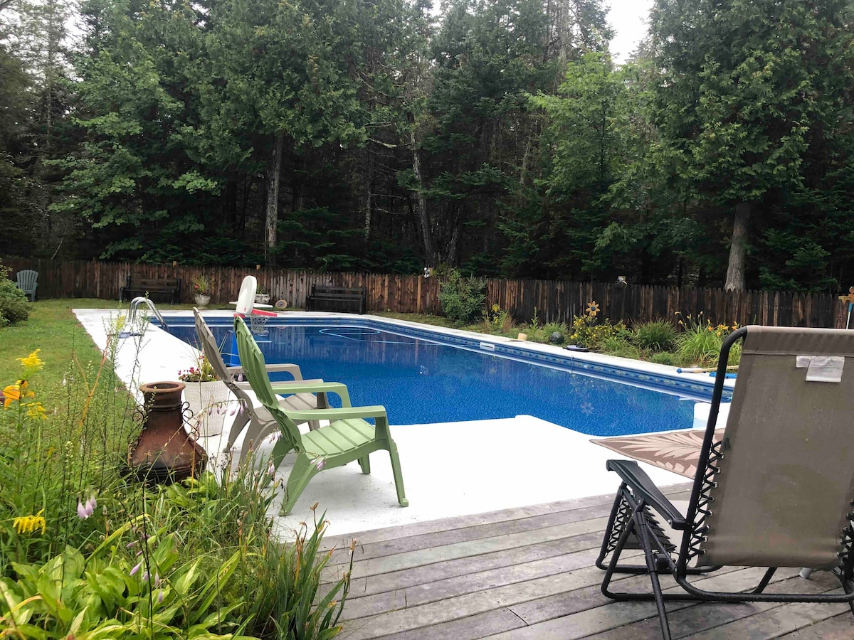 Enjoy this lovely home located just 3 minutes from the downtown coastal village of Blue Hill, 20 minutes from historic Castine, and 50 minutes from Acadia National Park. In ground pool offers fun summer relaxation, and a spacious yard gives kids a chance to enjoy the outdoors. It’s a family home set up for cozy evenings inside by the fire, or deck entertainment with outside fireplace for s’mores. Natural setting with lovely flowers and shrubs.