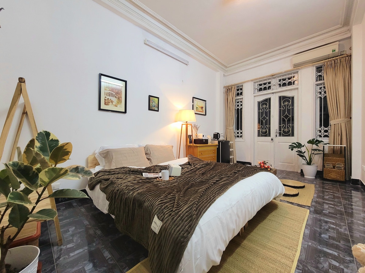 A hidden gem in the heart of Hoan Kiem District, where you can rest and unwind after exploring the bustling Old Quarter. Our space offers the warm feeling of home, right here in beautiful Vietnam. Located on a lively street with local eateries, cozy cafés, and Vietnamese fashion boutiques, yet still a peaceful and quiet retreat. The house is filled with natural light thanks to three open sides, and features a spacious balcony where you can relax or enjoy a smoke.