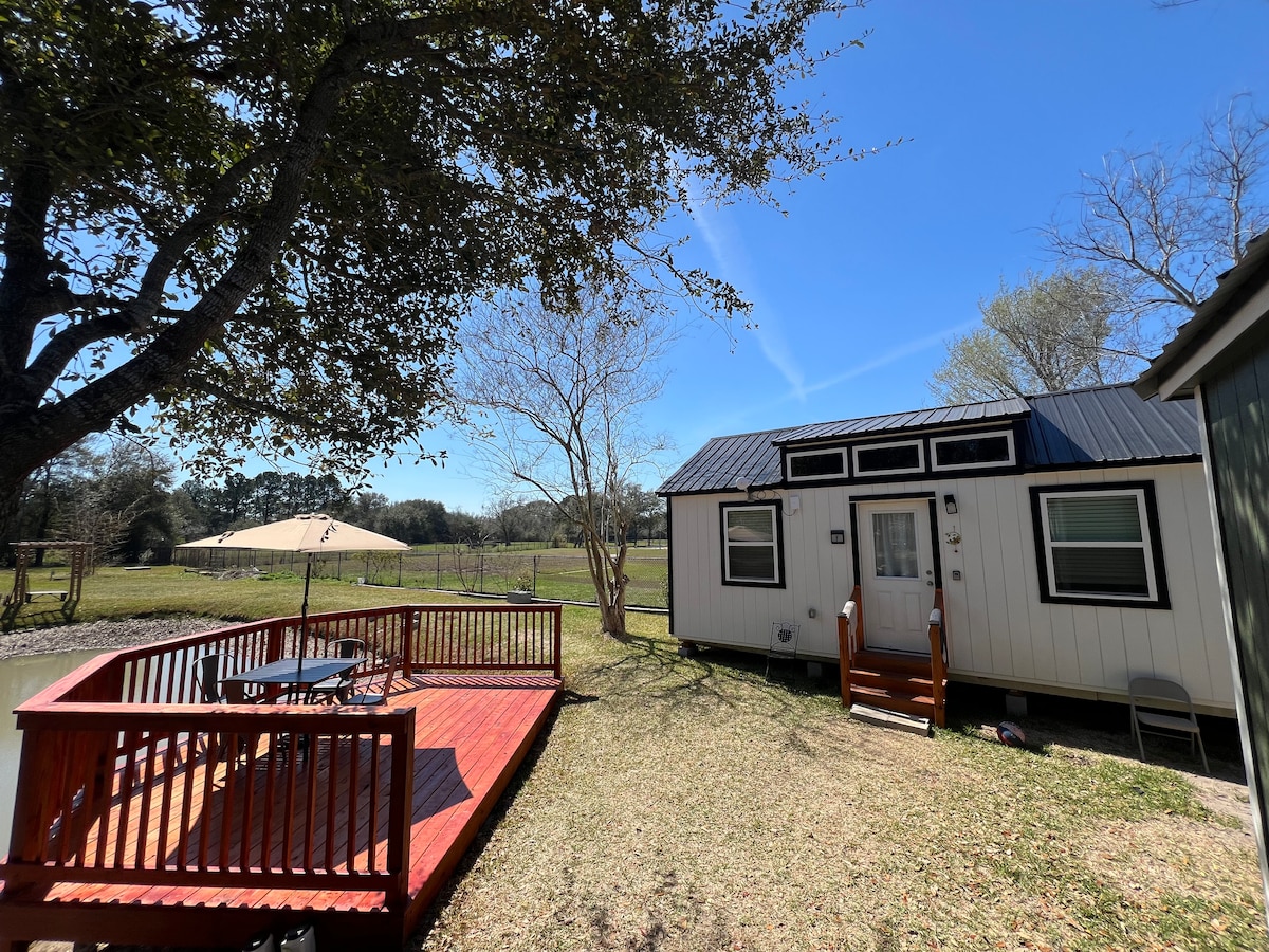 Located on the San Jacinto River, the Red Ear River Boat and RV Park is your laid back home away from home. Only 20 minutes from downtown Houston, this is the perfect place to spend a relaxing time in a very calm environment. This listing is for a cabin studio suite designed for a maximum of two guests, located within the fully gated RV community. It includes full access and use of the gazebo, WiFi, fishing pier, boat launch, and picnic area. Perfect for getting away from city life to relax.