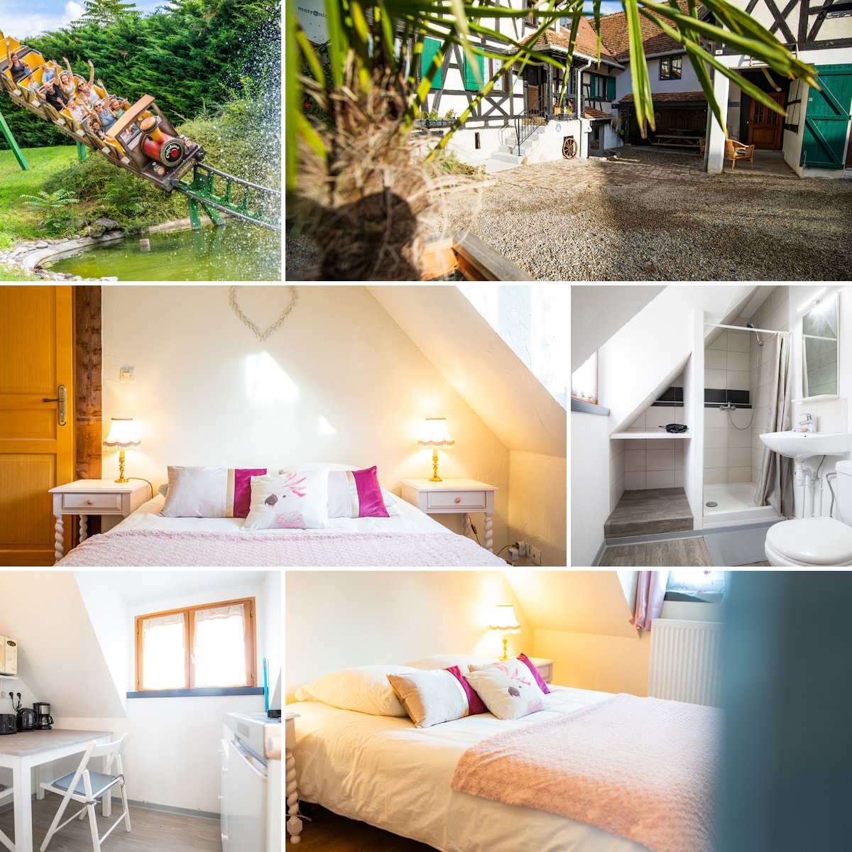 Aux portes de l'Alsace et des Vosges, venez vous ressourcer dans ce petit coin de paradis. Vous disposerez d'un gîte situé dans une propriété fermée. Au RDC: toilettes, cuisine équipée, coin salon équipé d'un téléviseur et d'un canapé-lit. A l'étage: un lit de 160, une douche, meuble vasque et toilettes. A l'extérieur une Terrasse, un abri de jardin. Amoureux de la Nature, de Sport, ou Balades du côté de la Route des Vins ou tout simplement besoin de repos, cet endroit est fait pour Vous.