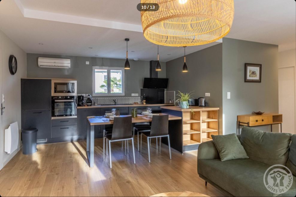Spacious home with Nordic bath and panoramic Pyrenees view – Sleeps 12 Peaceful and welcoming, perfect for families and friends. Two master suites (freestanding bathtub, modern shower), a child-friendly bathroom, and a cozy dormitory with bunk beds. One family room with Queen bed and single bed. Fully equipped kitchen, large dining table, Nordic bath under a pergola. 3,000 m² garden with stunning views of the Pyrenees from every room—even from your bed.