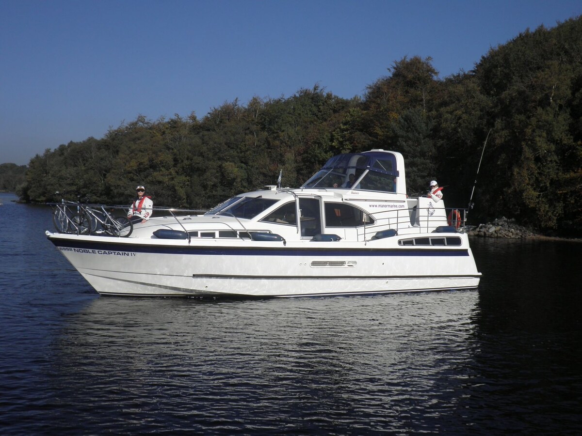 3 Cabins – one twin forward cabin convertible to a double, one double aft cabin, and one aft cabin with bunk beds Convertible double bed in the saloon Bow thruster Hot air central heating Dual steering positions inside and outside Two bathrooms with wash basins, WCs and isolated showers Radio/CD player Flybridge canopy Immersion heater 1800 watt inverter Shore power & battery charger
