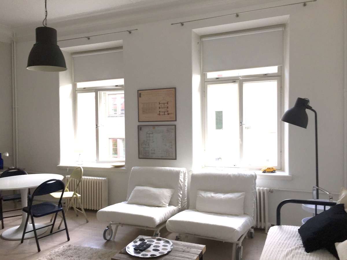 This is a private apartment in the absolute center of Helsinki City. The building is built 1891 and it has a rare charm to it. The apartment is 38 square meters with an open layout in top condition with a modern kitchen and bathroom. It is equipped with a brand new bed and couch. From here you have a walking distance to all top destinations such as Stockmann and Esplanade park. Right outside of your door you will find the best restaurants, museums, and shopping Helsinki can offer.