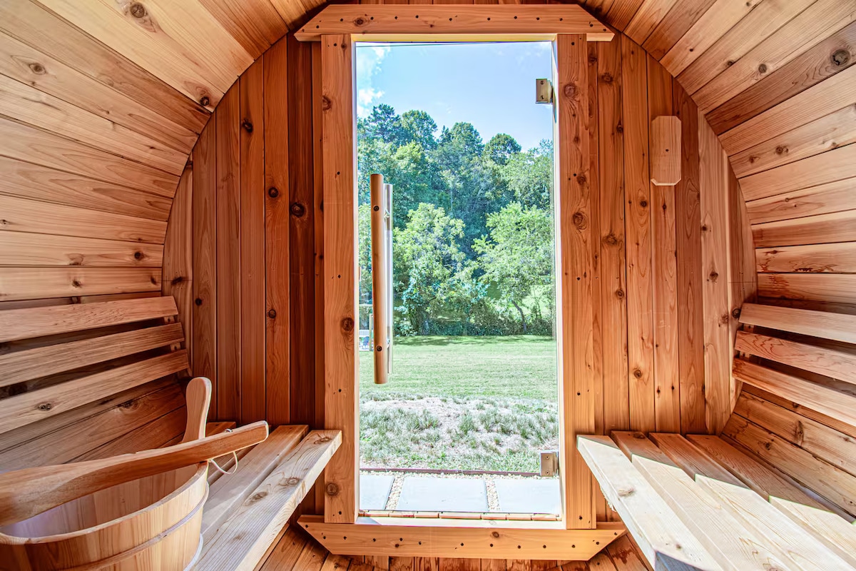 Tucked into a peaceful wooded setting, Eagle’s Nest is a charming gray tiny house with a queen bed, twin bunks, and a warm inviting interior. Enjoy morning coffee on the swing, cozy nights by the fire pit, or jacuzzi soaks under the stars. Elevate your stay with add-ons like a private mobile massage, curated romance package, street-legal UTV rides, and a sauna (coming soon). Perfect for couples seeking a serene and luxurious escape or families looking for a quiet escape in nature.