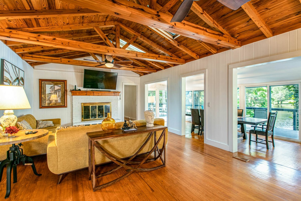 3 卧室湖畔房源,适合携带狗狗入住,配备热水浴缸、泳池和码头