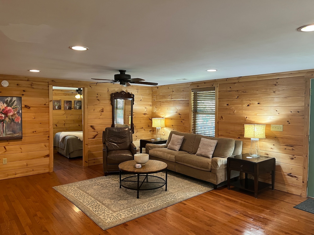 The Cabin at Tioga Forest is your springboard to adventure! Bright, sunny, spacious cabin, sleeps 6. Centrally located in Hendersonville on a private compound. Perfectly situated for exploring DuPont and Pisgah's waterfalls and trails, Hendersonville Brevard , Asheville and more. Take advantage of our partnership to get discounted tickets to the Biltmore Estate. Ask me for details.