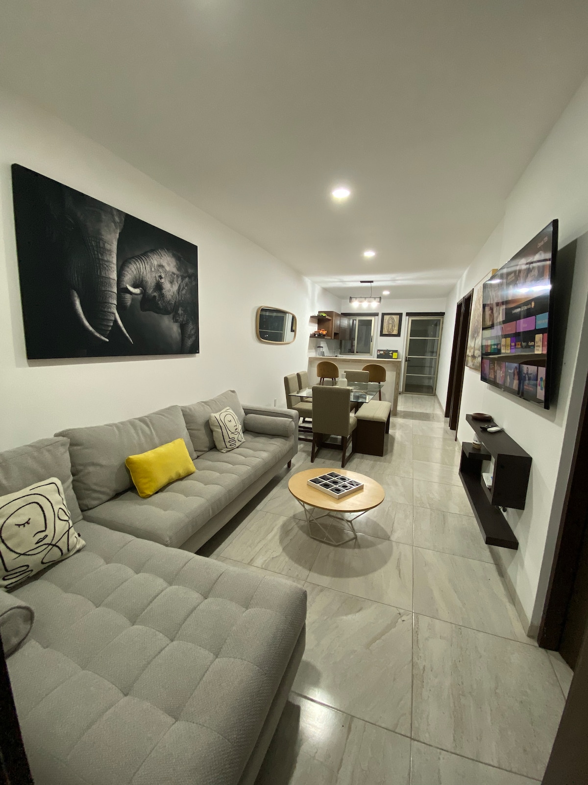 Explore serenity in a minimalist refuge, just a few blocks from the beaches of the Veracruz - Boca del Rio metropolitan area, in one of the safest areas of the city. High ceilings, a green corner and zen vibe distinguish this refuge. Black and white photographs around the apartment create a unique art atmosphere. The apartment is located just a few blocks from the beach and the city aquarium. There is a park next door and a market with regional products.