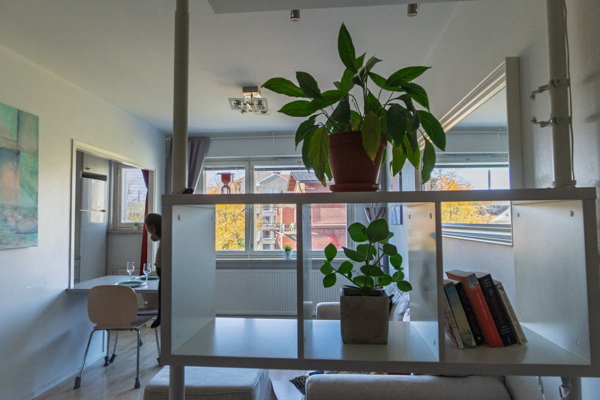 Peaceful studio located in city centre, with a wide view opening to a quiet biking lane behind the building. From here you can quickly walk everywhere in the center and all public transport stops within a few minutes' walking distance. The narrow 120x200cm double bed has a firm, ergonomically designed Tempur mattress, that is particularly fit for those who appreciate strong support. Clean bed sheets and towels are included. The kitchen has all the necessities for cooking.