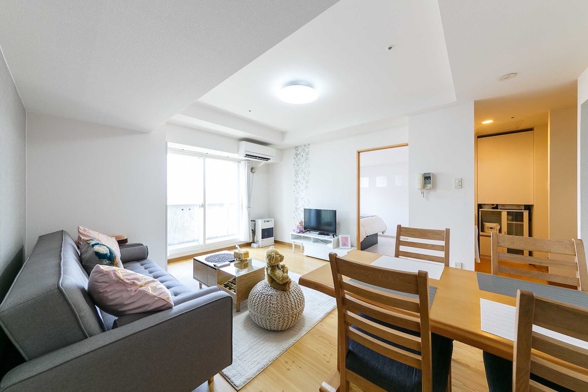 札幌市中心部近くに位置する、ゆったりとした3LDKのお部屋です。最大5名まで宿泊可能で、ご家族やグループ旅行に最適。静かな住宅街にありながら、札幌中心部へのアクセスも良好で、観光やビジネスの拠点として便利です。広々としたリビングには快適なソファとダイニングスペースがあり、キッチンには調理器具や家電も完備。各寝室には清潔なベッドと収納スペースを備え、長期滞在にも対応。Wi-Fi完備でテレワークにも最適です。近隣にはスーパーやコンビニやカフェもあり、生活にも困りません。四季折々の札幌を、落ち着いた空間でゆっくりとお楽しみください。