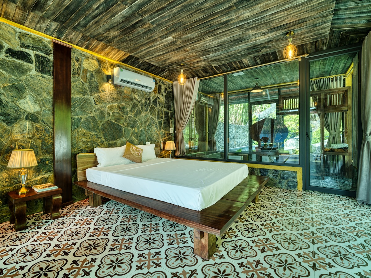 Gai Mountain Lodge mang đến trải nghiệm thư giãn giữa thiên nhiên, nằm sát núi và hồ, gần Thiên Tôn Cave. Mỗi phòng đều có khu vườn riêng, nội thất hiện đại, tạo cảm giác thoải mái như ở nhà. Sân thượng rộng rãi là nơi lý tưởng để ngắm hoàng hôn, thưởng thức đồ uống và tận hưởng không khí trong lành. Không gian yên tĩnh, gần các danh thắng Ninh Bình, phù hợp cho du khách muốn nghỉ dưỡng và khám phá.