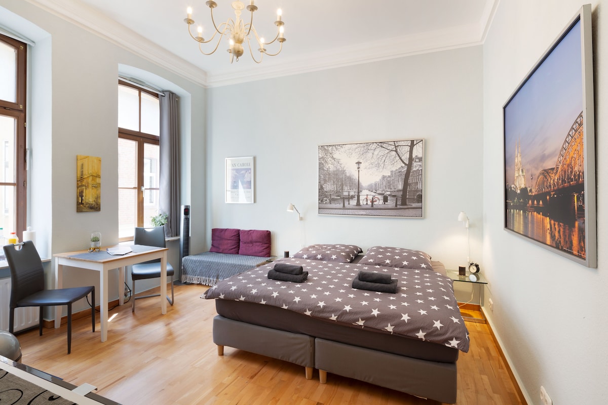Top renovierte 50m² ALTBAUWOHNUNG (Erdgeschoss) im Herzen von Köln. Der vordere Raum ist nicht möbliert, da er zwischendurch als Fotostudio genutzt wird (natürlich nicht während einer Vermietung). Schöner Holzboden, neues Boxspring Bett, neues Bad, neue Küche. Extrem schnelles WLan. In der Nähe von zahlreichen Restaurants, Bars und einem Supermarkt. Sehr kurzer Weg zum Flughafen (17 Minuten mit der Bahn), 15 Minuten zu Fuß zum Hauptbahnhof, S und U-Bahn sind 5 Minuten entfernt.