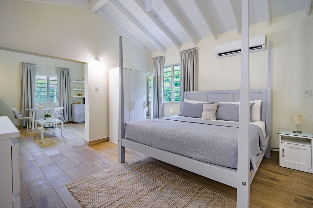 This spacious upper floor apartment is fully air conditioned. Guests have the option of 8 windows and French double doors which allows the nice Caribbean breeze to flow through. It has a spacious sleeping area, dining area and kitchen along with a large upper floor patio. Situated on the luxurious west coast of Barbados just 2 minutes walk away from beautiful Cobblers Cove beach. Shops, museums and restaurants are just 5 minutes away.