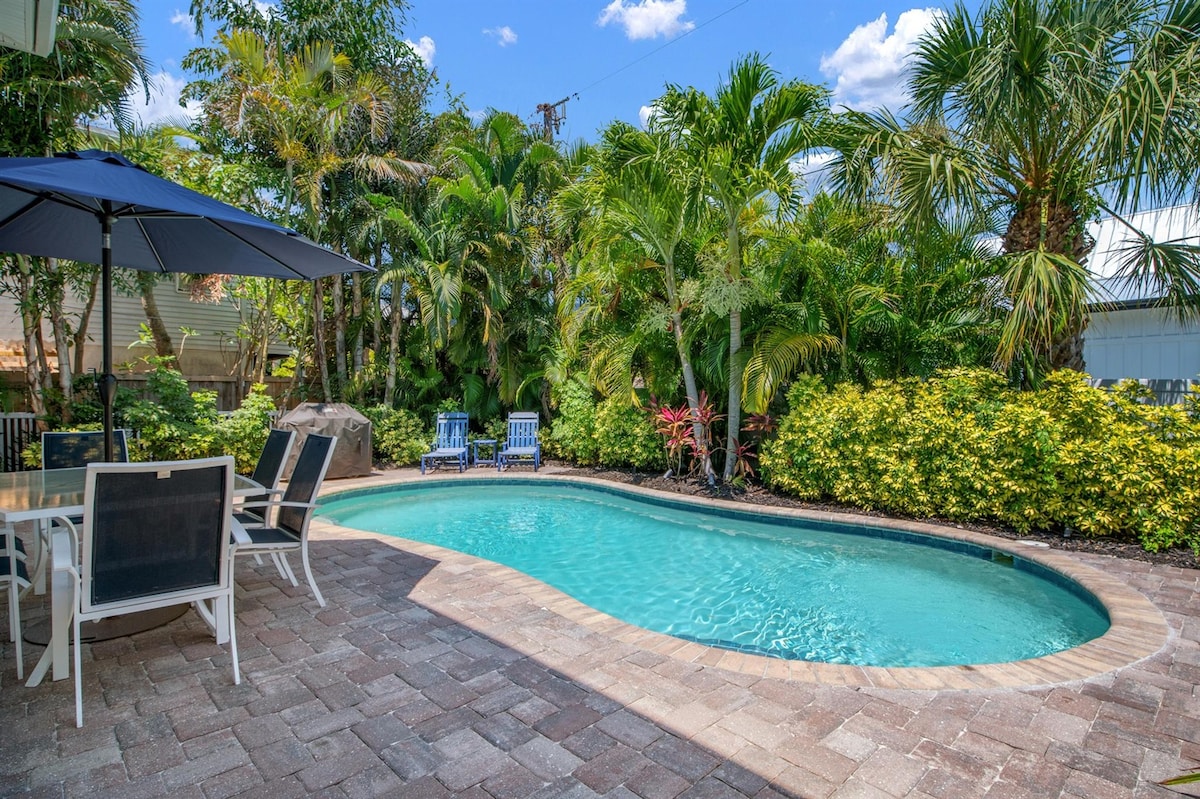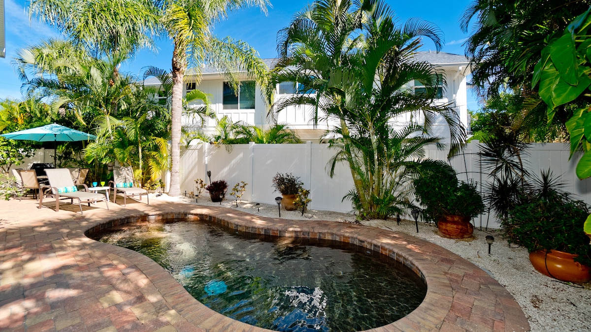 Charming Salty Harbor sits in a quaint, exclusive corner of AMI and boasts a private heated pool and ample parking for 2 vehicles and even a boat: -Ask us if your dates don't fit our calendar! -If you don't have a single 50Lb pet, please discuss it with us -One of the twin boutique MyAnnaMariaStay homes, look us up! You'll love the luxury mid-century feel, lush yard, and a 6-min walk to the beach, Publix or the trolley stop. AMI was voted a top 50 vacation spot in the world in 2024