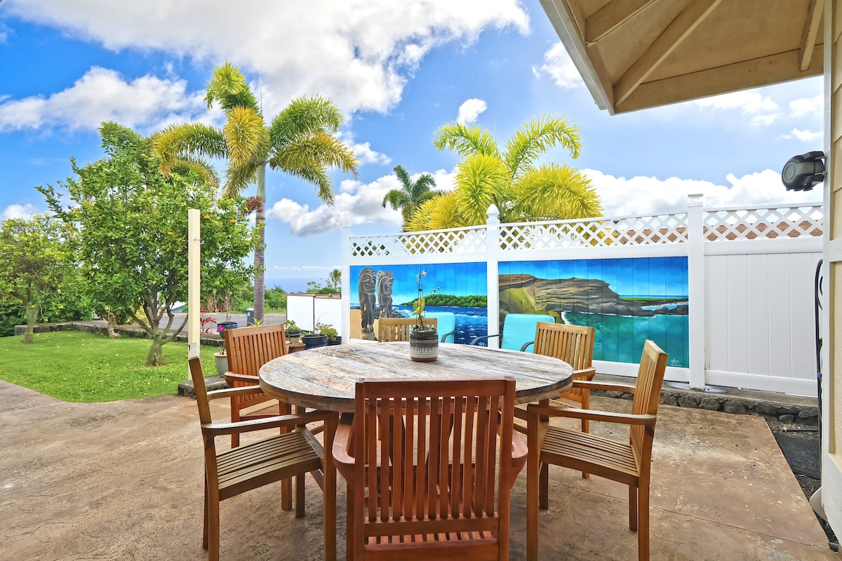 2300 sq.ft home on over an acre is perfect for time with family & friends. 10 minutes from downtown Kona, in Holualoa, with organic coffee, fruit trees, and flowers. There is a roof-top games with ping-pong room overlooking the garden. Paddle boards, snorkeling gear, basketball, and lots of games are also provided. Entertaining is easy on the huge lanai with bbq and a kitchen equipped with cooking staples and equipment. Home is on-property hosted.