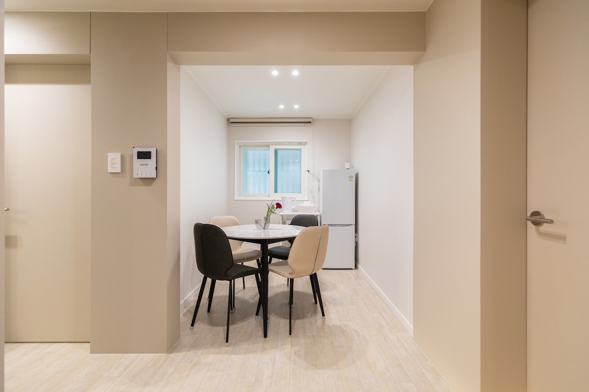 [house 204] - Hongik University Station is a 3-5 minute walk away and close to the main street. - The building has a 12-person elevator that can easily move large bags. - All premium quality bedding (bed sheets, duvet covers, pillow covers) are always washed as standard option for each guest. - Guests control the temperature of the air conditioner in the summer and the boiler in the winter directly from their rooms. - The building was built in 2023 and is clean.