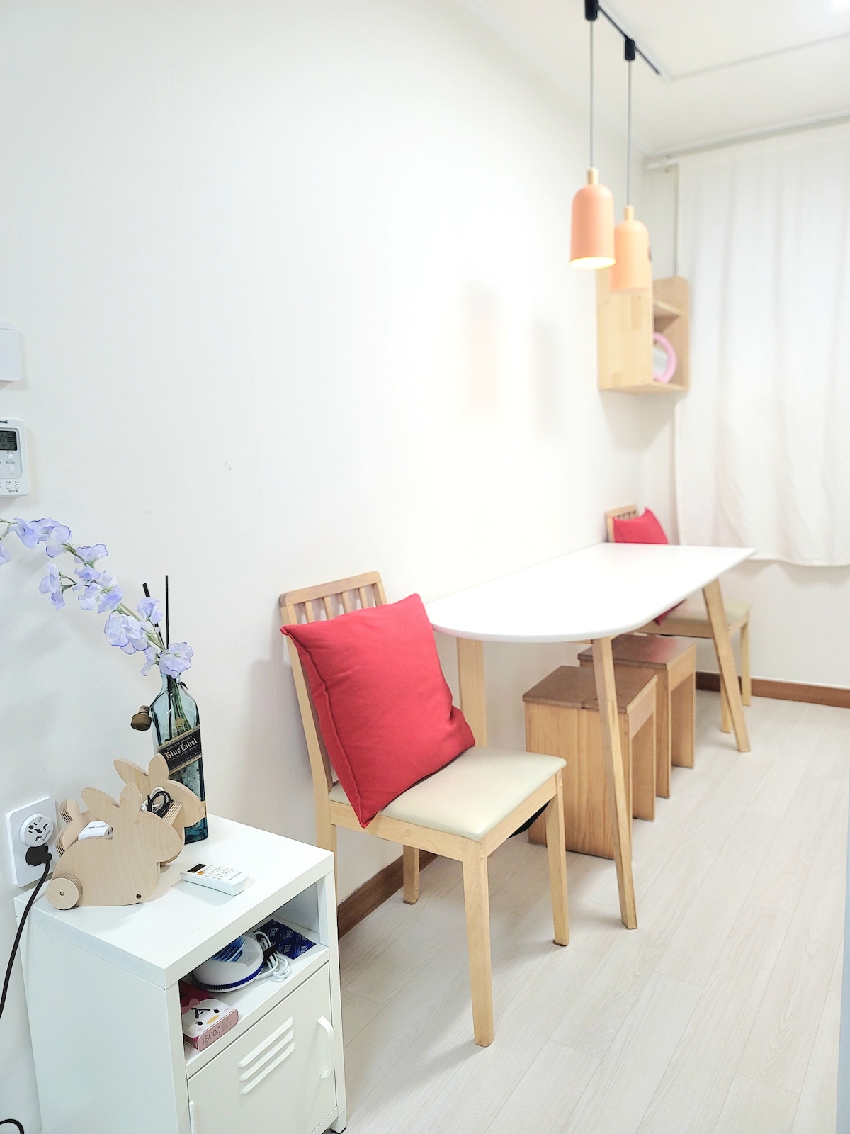 A bright modern studio in the very center of Hongdae. Minimal yet warm with bright yellow accents, the studio is equipped with a full kitchen, fridge, washer(that has dryer function), AC, floor heating(even in the bathroom), a full bathroom, a Queen size bed(1500mm width), a spacious work station/table(1400mm width), and other meticulous amenities you may need. Located on the first floor of a 4 story house building (where my family lives on the top floor) with a separate entrance for you.
