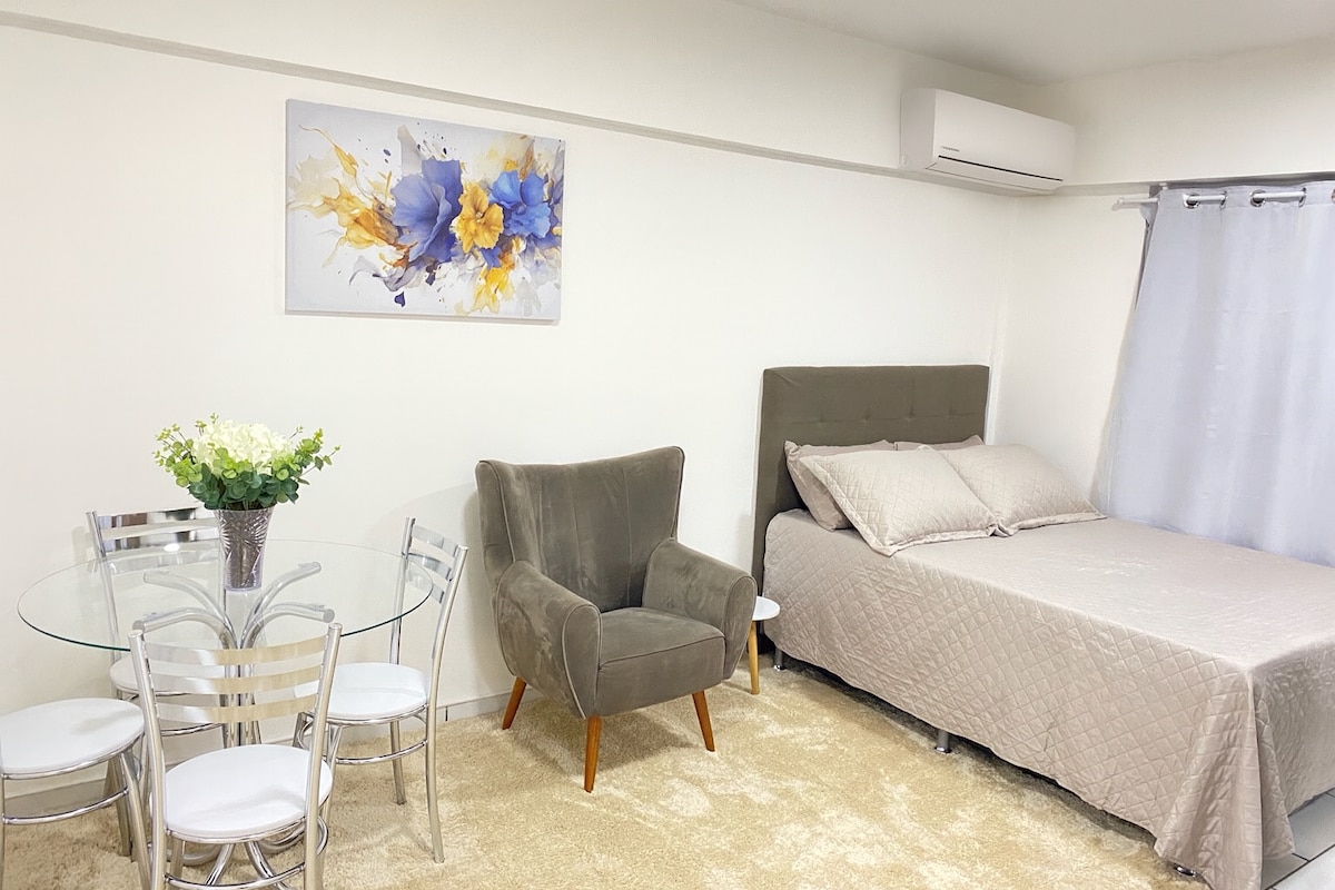 Ótima localização! O studio está localizado em uma das principais avenidas da cidade, próxima a Atitus Educação, Passo Fundo Shopping, farmácias, supermercados e fruteiras. Studio novo, decorado, pensado para você ter uma estadia confortável e tranquila. Comodidades do apartamento: -TV Netflix; -Ar condicionado; -Boa iluminação; -Internet rápida; -Cama confortável; -Lava e seca; -Microondas; -Geladeira; -Airfryer; -Secador de cabelo; -Vaporizador para roupas; -Espelho; -Chaleira elétrica.